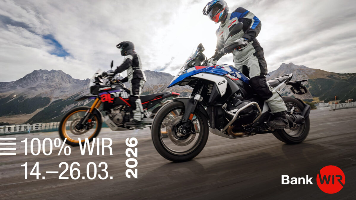 Vom 14. bis 26. März (oder bis auf Widerruf) profitieren WIR-Kunden bei uns von einer ganz besonderen Aktion: Motorradbekleidung der Marken Held, Furygan, Daytona und Schuberth kannst du bis zu 100% mit WIR bezahlen.