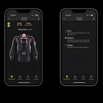Dank Bluetooth zeigt die Tech-Air®-App den Systemstatus und den Akkustand an und analysiert Ihre Fahrten per GPS-Tracking. Sie ermöglicht Ihnen außerdem den einfachen Wechsel zwischen den Modi STREET, ENDURO und RALLY für optimalen Schutz in jedem Einsatzbereich.